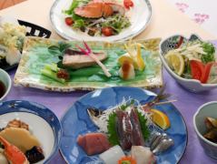 您可以悠閒地享用以宿毛當地捕獲的新鮮海鮮為特色的晚餐。