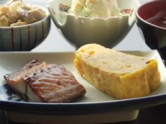 早餐是日式早餐,可以享用黑潮町的干魚和大卷煎蛋捲。